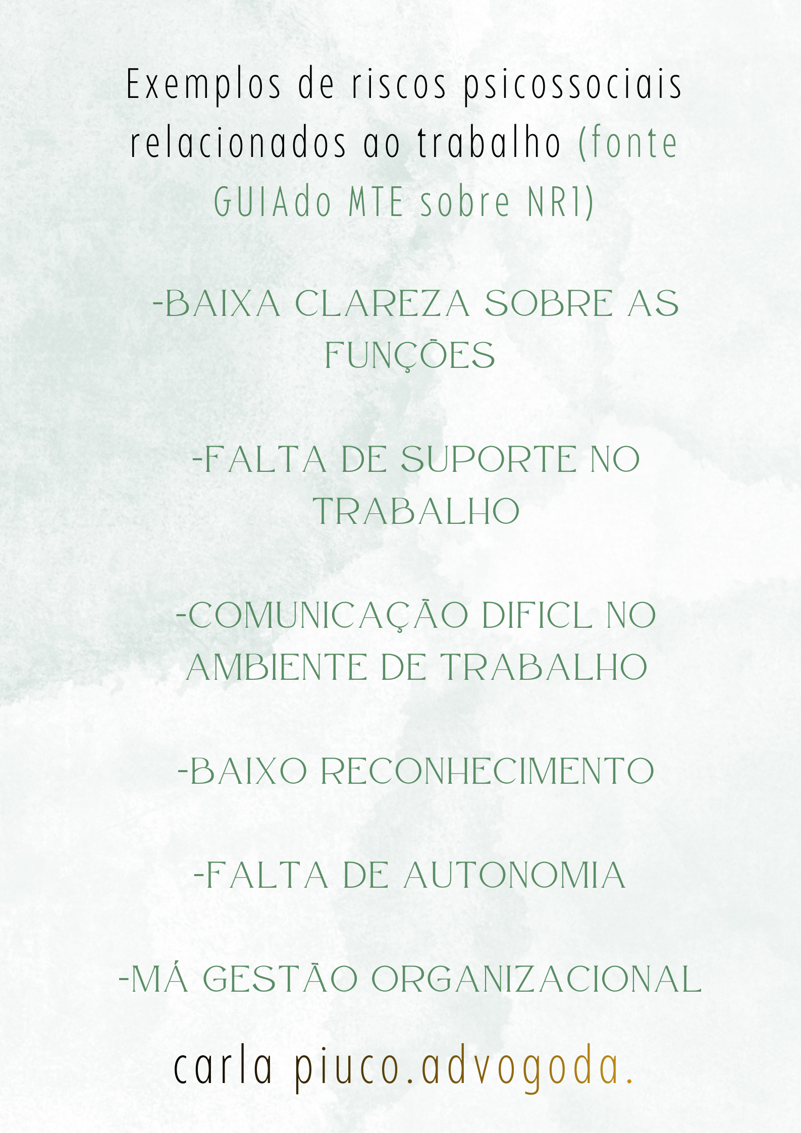 NR1:EXEMPLOS DE RISCOS PSICOSSOCIAIS NO TRABALHO